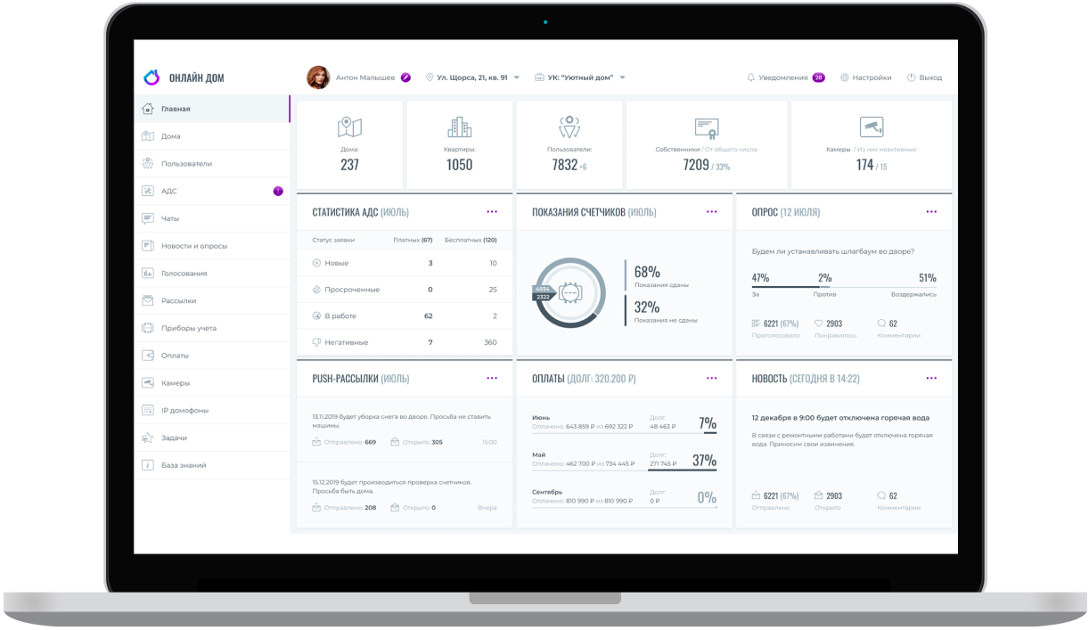 А еще, «Онлайн Дом» – это целая экосистема для управляющих организаций или застройщиков