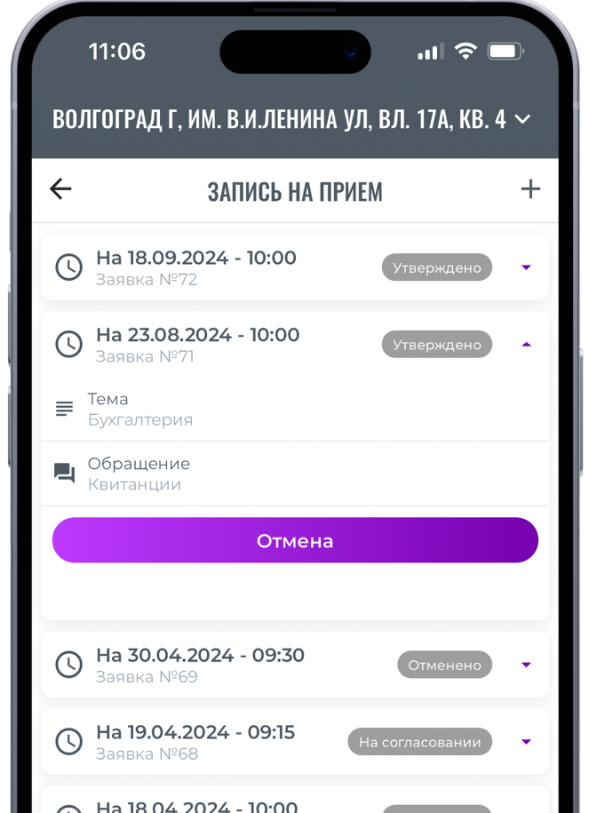 Запись на прием в управляющую компанию. Выберите нужное время посещения или запросите необходимые документы и получите их онлайн.