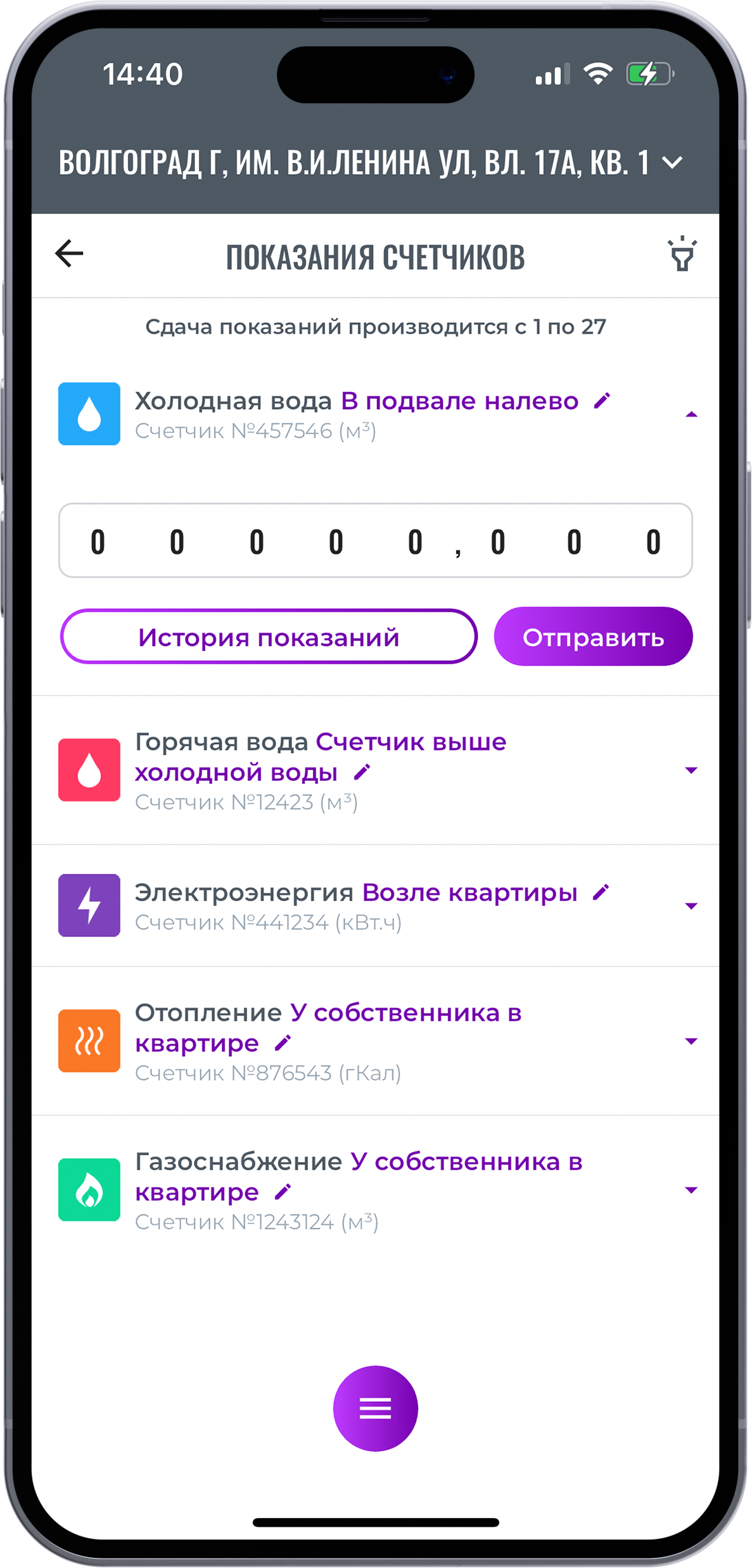 Сдача показаний счетчиков